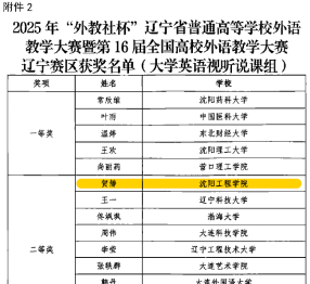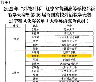 6月7日,由辽宁省教育厅主办的 2025 “外教社” 杯辽宁省普通高等学校外语教学大赛(大学英语组)决赛在辽宁大学圆满落幕。太阳集团tyc234cc教师贺静、刘雪松凭借扎实的教学功底、创新的教学设计与出色的现场表现,分别在大学英语(视)听说课组、大学英语综合课组的激烈角逐中脱颖而出,双双荣获二等奖。