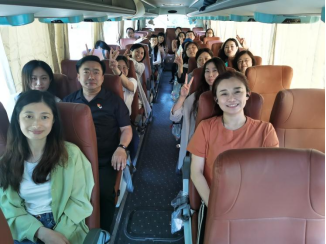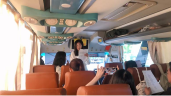 第一环节是由学院分工会组织,在去程大巴车上开展了抗联知识问答活动,教师们踊跃抢答,现场氛围热烈;
