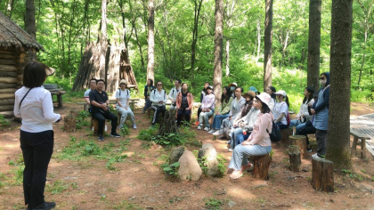 第四环节是重走抗联路。全体教师走进关门山抗联密营遗址,在讲解员的介绍下,深入了解到杨靖宇等抗联将领在缺衣少弹、困难重重的条件下坚持进行艰苦卓绝的斗争的英雄事迹,深切地体会到今天幸福生活的来之不易,再次为抗联英烈们百折不挠的民族气节所深深感动,并为自己是中华儿女而感到深深的骄傲和自豪。