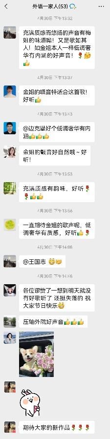 学院老师们在递交作品阶段主动踊跃参与,在展播阶段积极热情评论,在投票环节认真严谨投票,充分展现了外语学院大家庭和谐向上的精神面貌!