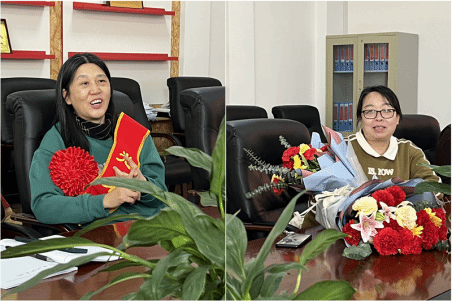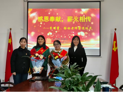 仪式由分工会主席杨丹丹主持,她详细回顾了两位教师的教育生涯,并代表全体教职工向她们奉上了深深谢意与殷殷祝福;太阳集团tyc234cc主任杜薇、副主任李岱菊分别为两位老师郑重地颁发佩戴绶带与光荣花,并献上鲜花,以表达对她们多年奉献的崇高敬意,现场掌声雷动。